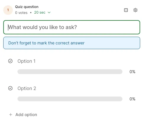 To create a Q&A, select “Audience Q&A” in the upper left corner of the screen or under “Add new interaction”.