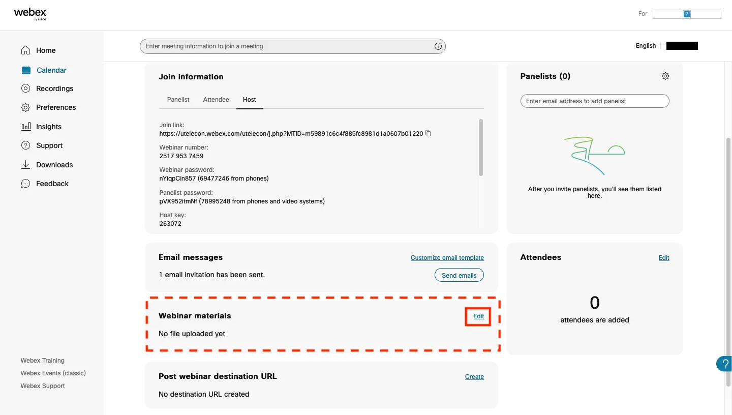 - To upload your files, go to the edit Webinar page and click on “edit” under the “Webinar materials” section.