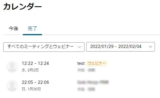 2. 「完了」をクリックし,出席者一覧を取得したい会議を選択します.