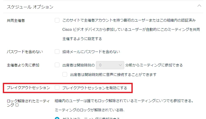 • ブレイクアウトセッションは,スケジュール時に設定するか,ミーティングが始まってからでもメニューバーから有効にする必要があります.