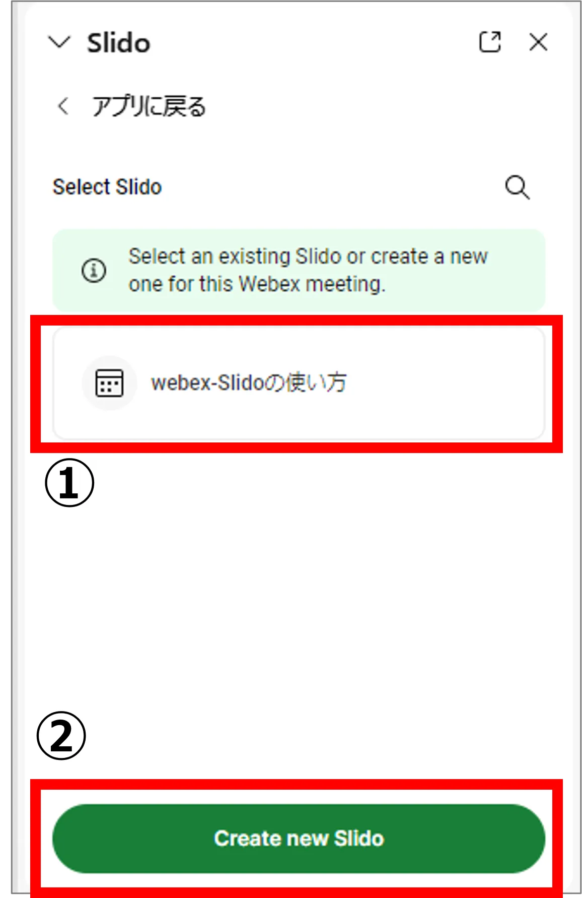 • Webex上で作成したSlidoイベントは,主催者のSlidoイベント一覧のページに保存されます.