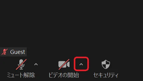 1. ミーティング画面下部に表示されている「ビデオの開始(または「ビデオの停止」)」ボタンの横にある上ボタンを押してください.